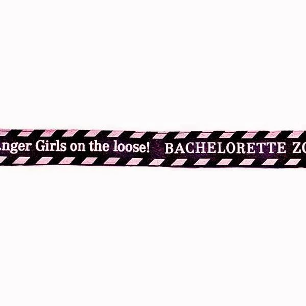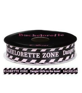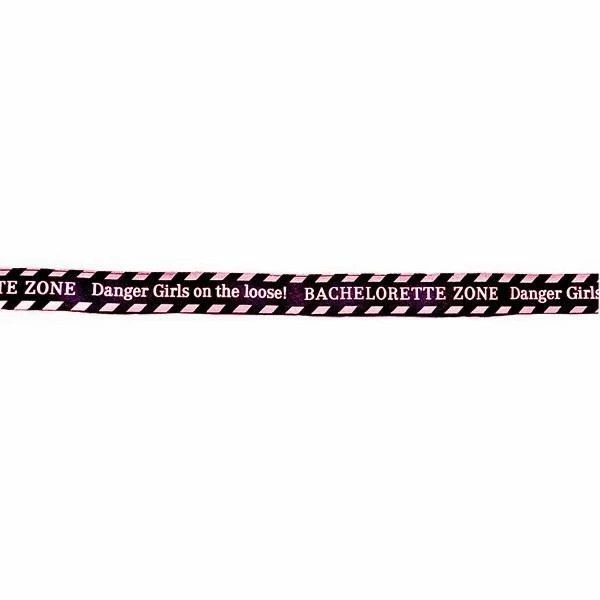 This “Bachelorette Zone Danger Girls on the Loose” ribbon is the appropriate accessory for a wild bachelorette party. It coordinates with the Caution Bachelorette tape and the Bachelorette Party Outta control party and car decorations.There are warning bachelorette party and gift bags to add to the theme. A cute way to personalize the favor bags for the party guests. The Ribbon so many uses for the Bride to Be’s final fling.