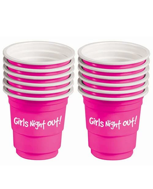 Too cute! These hot pink plastic shot glasses will be a hit at your next party- each one is labeled GIRLS NIGHT OUT! just line em up on the counter, fill em and ‘bottoms up’. Write each guest’s name on their shot glass! A great party favor for the Bachelorette Party or Ladies gathering. Hard Plastic with a white rim. Durable and will hold 2 oz of your favorite shot. Light weight to take to the party destination. Styled after the larger 16 oz drink cup. Celebrate being a girl with your lady friends. Cheers Bitches!!!