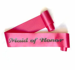 The Maid of Honor should be properly honored, so why not start with a lovely Maid of Honor sash! The glittering black letters stand out beautifully against the pretty Hot Pink satin.