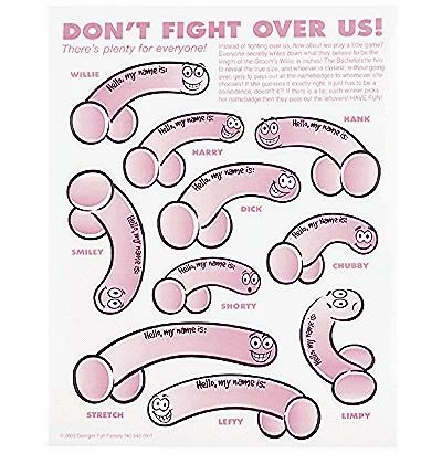 With this Willie Name Tag Game everybody at the bachelorette party gets to name their little friend! And this is one time when size does matter! These labels are die-cut…just peel and stick. A Fun time for any Girl’s Night Out.